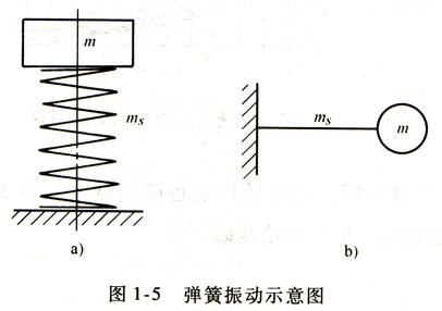 —當量質量,它是彈簧本身的質量和彈簧所聯結的質量的綜合值(表9-5),如圖1-5所示彈簧系統,其